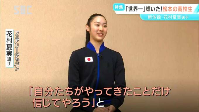 8月に行われた新体操の世界選手権で、日本代表=フェアリージャパンの団体メンバーとして、初の世界一に輝いた松本市の高校生・花村夏実(はなむら・なつみ)選手。歴史的な快挙から1か月、心と体をリフレッシュしながら、すでに次の目標を見据えて再スタートを切っています。