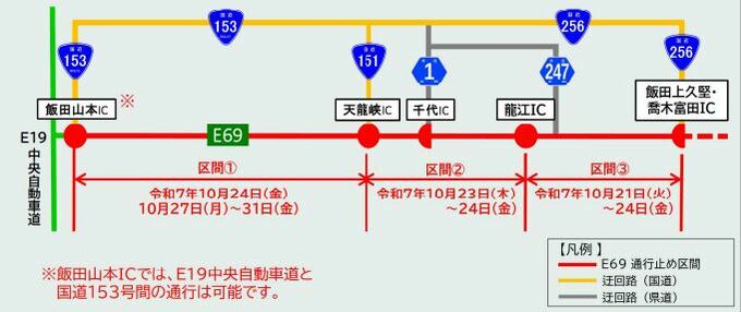 ■飯田山本インターと天龍峡インターの間は、10月24日と27日~31日にかけて、