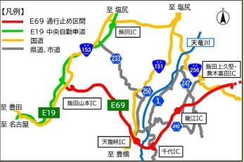 国交省飯田国道事務所によりますと、通行止めになるのは、三遠南信道の