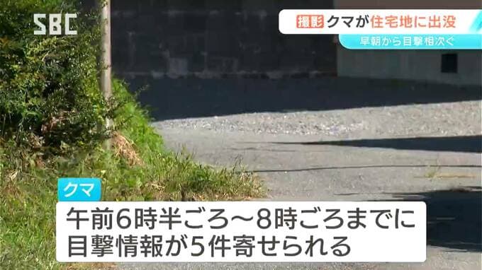 クマが出没したのは、飯田市上郷黒田の住宅の敷地内や道路上で、警察や市によりますと、午前6時半ごろから午前8時ごろまでの間に、目撃情報が5件寄せられました。