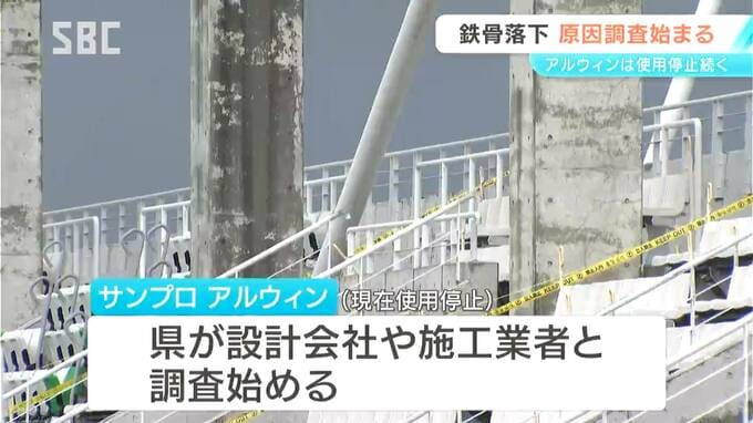 松本市のサンプロアルウィンで鉄骨の部材が客席に落下したことを受けて、県が現場の調査をはじめました。