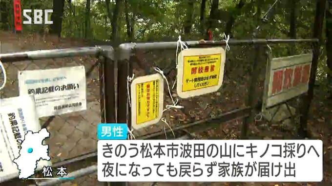 警察によりますと、男性は、6日午前6時ごろ、自宅を出て、松本市波田の山にキノコ採りに出かけましたが、夜になっても戻らず家族が警察に届け出ました。