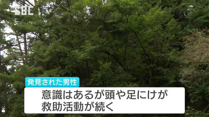 消防によりますと、発見された男性は意識はあるものの頭や足にけがをしていて、救助活動が進められています。