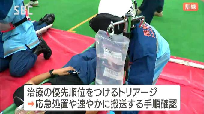 訓練はマイクロバス同士の交通事故で20人以上がけがをしたとの想定で行われ、長野市消防局の職員およそ65人が参加しました。