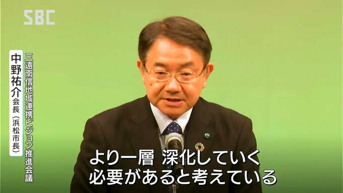 三遠南信地域連携ビジョン推進会議 中野祐介会長(浜松市長):「今こそ圏域のさらなる発展のため地域が連携をして、産業・観光・医療・防災などさまざまな分野での連携の取り組みを、より一層深化していく必要があると考えている」