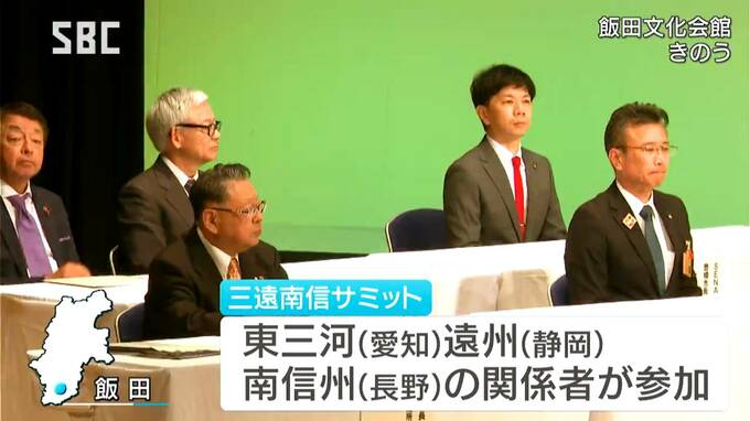 飯田市で6日開かれたサミットには、「三遠南信」を構成する愛知県の東三河地域、静岡県の遠州地域、長野県の南信州地域の、3つの地域の自治体や経済団体の関係者、住民などが参加しました。