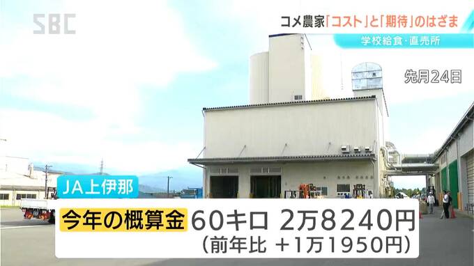 今年のJA上伊那のコメ農家に支払う前払い金=概算金は60キロあたり2万8000円余りで去年よりおよそ1万2000円も上がりました。