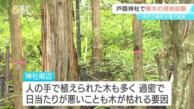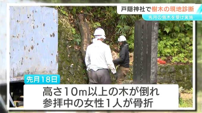 落雷などが原因で9月に木が倒れ、参拝客1人がけがをした長野市の戸隠神社で事故の再発を防ごうと樹木の診断が行われました。