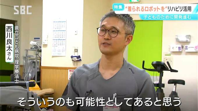 県立こども病院理学療法士 西川良太さん:「理学療法は、理学療法士それぞれの感覚で培ってきたものが大きいので、ロボットのメリットは人によって変わる部分を取り外せるところ。同じ設定で同じように毎回練習ができる。麻痺の程度によって歩くことが難しい子もいるので、脳性麻痺の子が全部使えるわけではないが、歩き方をスムーズにさせたり、手術後に自分で動かすのが痛いときにサポートが入ると少しやりやすいとかあるのであれば、そういうのも可能性としてあると思う」