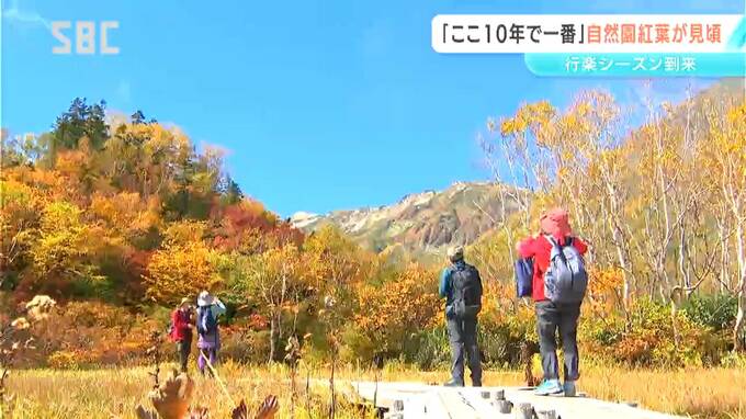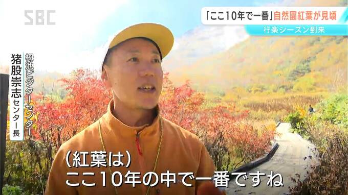 栂池ビジターセンター 猪股崇志センター長:「ここ10年の中で一番ベストですね。それぐらい色づきがキレイです。黄色と赤の発色が特に赤が特にいいですね」