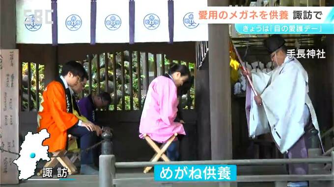 諏訪市の手長(てなが)神社では、役目を終えたメガネに感謝しようと「めがね供養」が行われました。