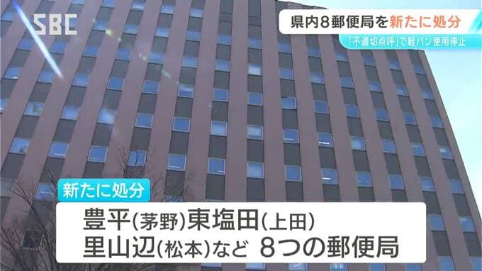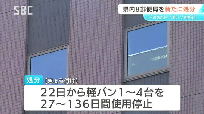 日本郵便が配達員の飲酒などを確認する点呼を適切に行っていなかった問題で、長野県内の8つの郵便局が、国土交通省から新たに行政処分を受けました。県内で処分を受けた郵便局は合わせて11か所となりました。