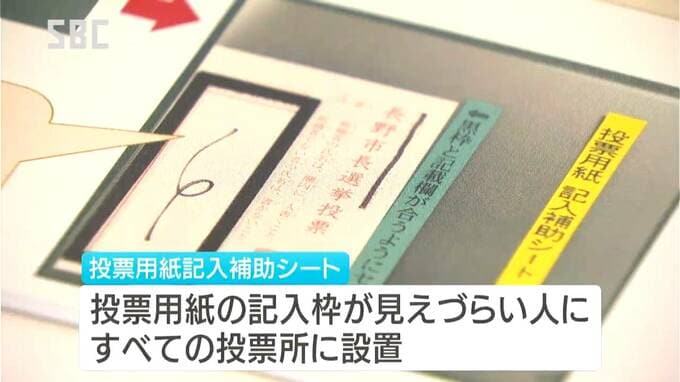 今回の選挙から、弱視や高齢者など投票用紙の記入枠が見えづらい人に向けて、記入位置が切り抜かれた専用のシートがすべての投票所に置かれました。