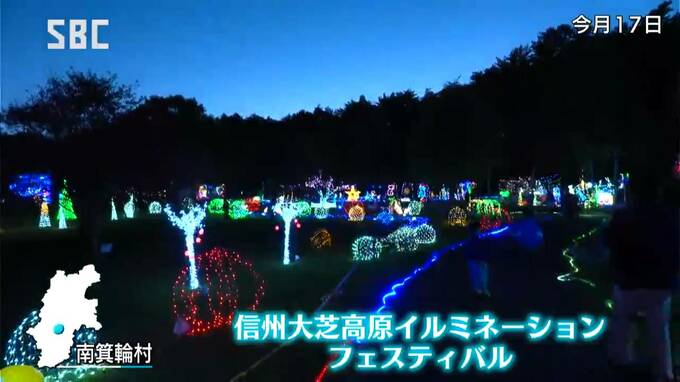 信州大芝高原のイルミネーションは、25日まで午後5時から午後9時までの間、点灯されます。