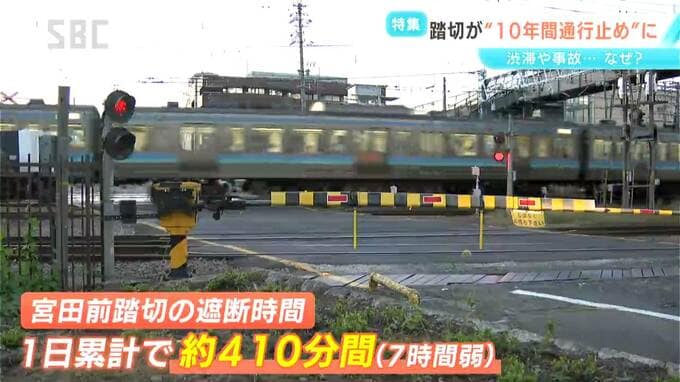 JR東日本によると、宮田前踏切の遮断機が下りているのは、1日のうち合わせておよそ410分間、7時間弱にもなります。