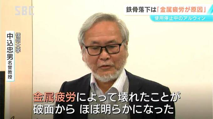 信州大学 中込忠男名誉教授:「金属疲労によって壊れたことが破面からほぼ明らかになった。こういった特殊な破壊が起きることはごくまれ」
