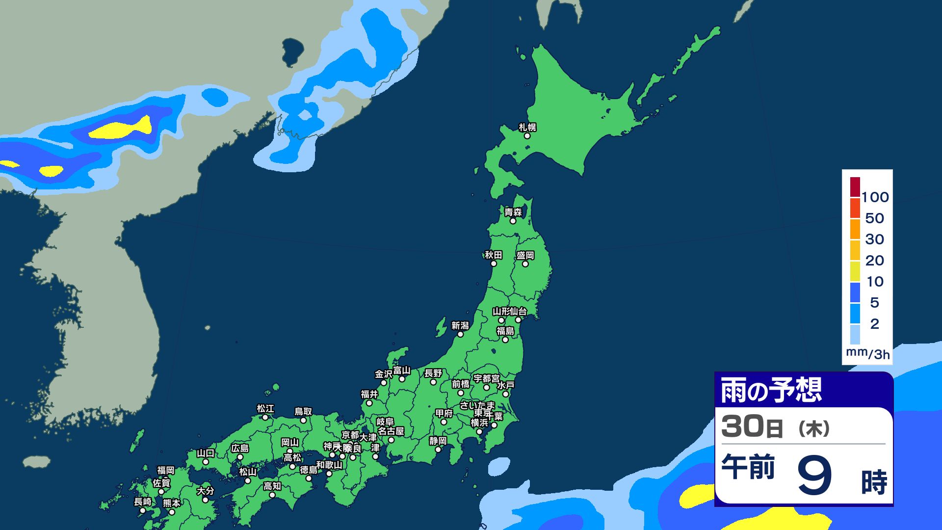 1日の雨の予想