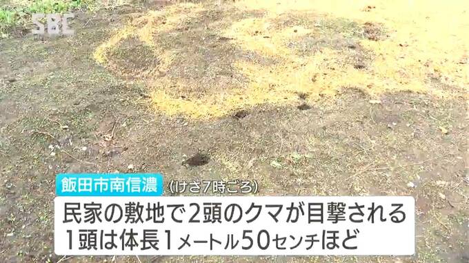 また、飯田市南信濃では、午前7時ごろ、民家の敷地内で2頭のクマが目撃されました。1頭は体長1メートル50センチほどだったということです。