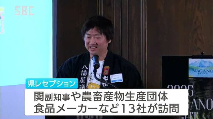 県によりますと、関昇一郎副知事のほか、信州の農畜産物を生産する団体やみそ、日本酒を製造する食品メーカーなど13社が訪問し、参加者およそ100人に直接アピールしました。