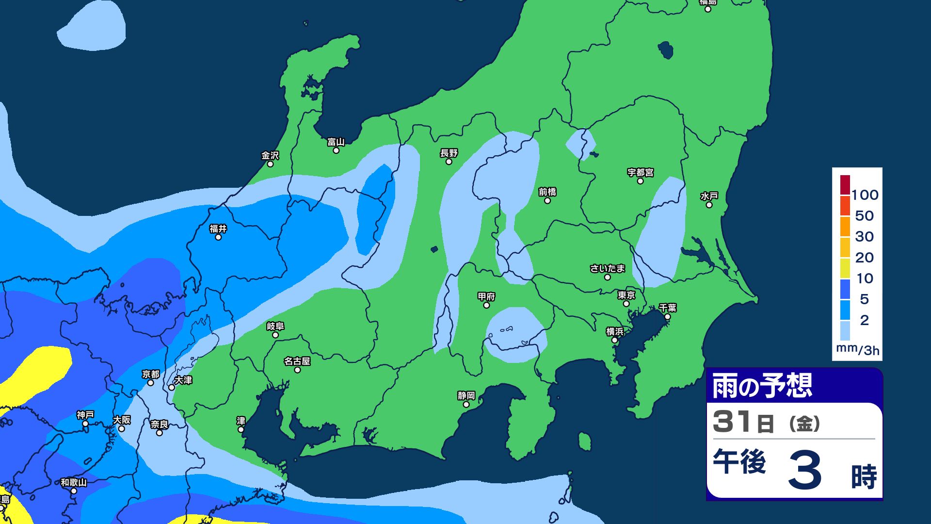 関東地方南部 100ミリ