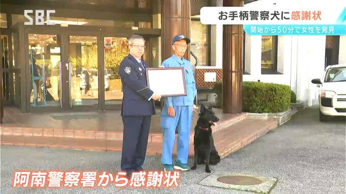 泰阜村で行方不明になっていた70代の女性を発見した警察犬に感謝状が贈られました。