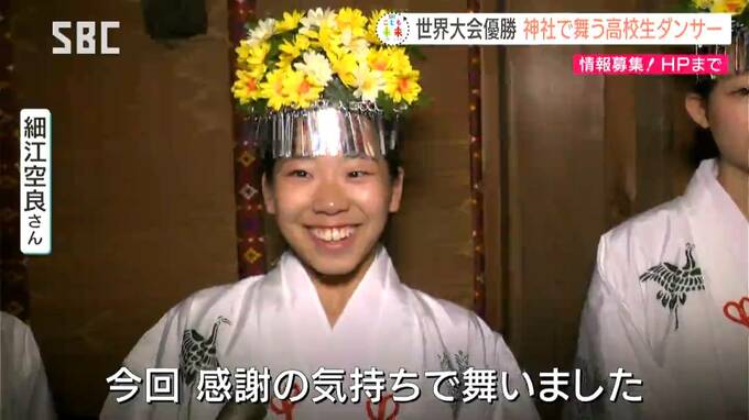 細江空良さん:「去年巫女舞をやらせてもらった経験が(世界大会総合優勝に)つながったと思うので、今回感謝の気持ちで舞いました」