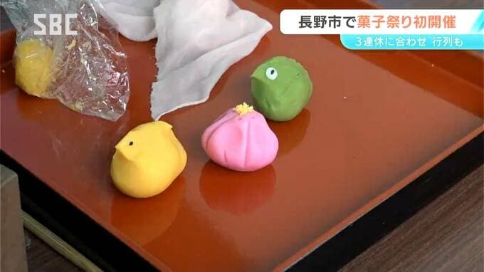 「食べたくなっちゃった!」長野市で初の「菓子祭り」開催 上生菓子の練り切り作りの実演も! 2025年11月3日(月) 18:32 国内 長野市のセントラルスクゥエアにできた、長~い行列。市内にある菓子店を知ってほしいと菓子組合が初めて企画した「ながの菓子祭り」です。およそ20店舗が自慢の商品を並べました。限定200食、できたての「おしる…