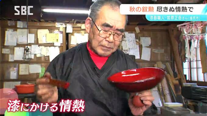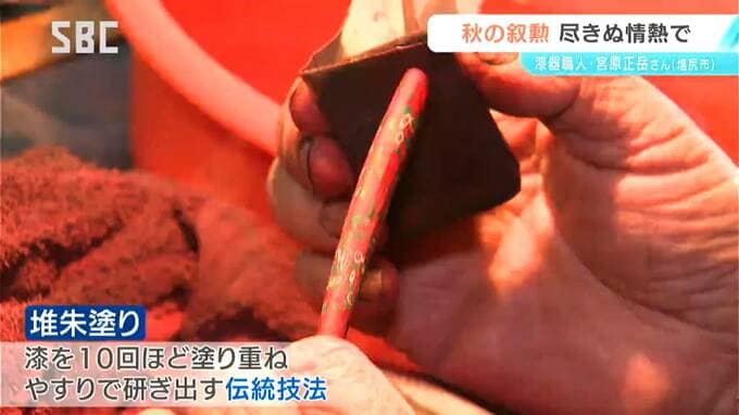 木曽漆器 職人 宮原正岳さん:「何年経っても何十年経っても、その奥が深くて、いつも成功しないだよ。失敗もある。そこが極められないところが面白いかな。失敗するとどこがいけなかったのか。塗る工程がいけなかったのか。研ぎがいけなかったのか、仕上げがいけなかったかって、そこでまたこう考えるのも面白いね。尽きないよ」