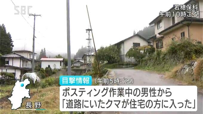 4日午前5時ごろ、長野市若穂保科で、ポスティング作業をしていた男性から、「道路にクマがいて住宅のほうに入っていった」などと警察に通報がありました。