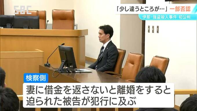伊那市で3年前、女性の首を絞めて殺害し通帳などを奪ったとされる男の裁判員裁判が始まり、男は「少し違うところがある」などと起訴内容を一部否認しました。
