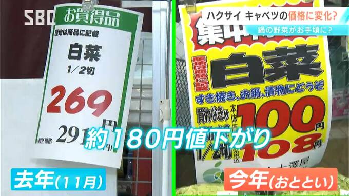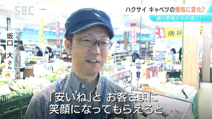 ファーム大澤屋 坂口大専務:「白菜もここに来て数量が増えていますので、ぐっとお安くなっています」