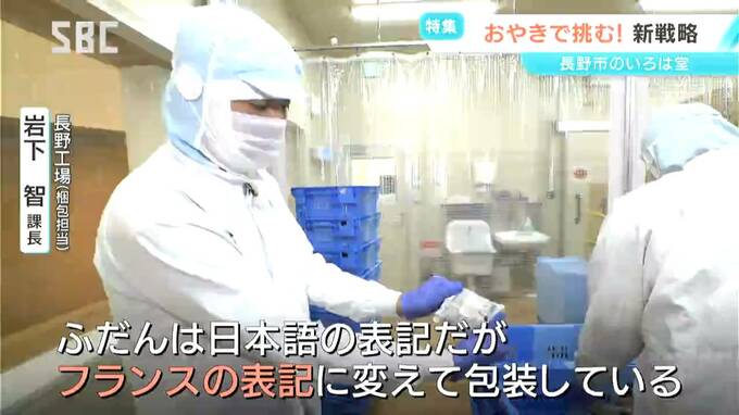 長野工場(梱包担当)岩下智課長:「普段は日本語の表記だが、フランスの表記に変えて、包装している」