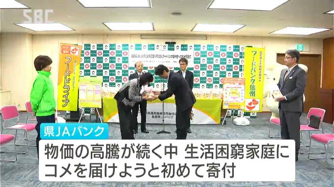 物価高騰が続く中、困窮世帯の支援につなげようと県JAバンクがNPO法人に長野県産のコメを寄付しました。
