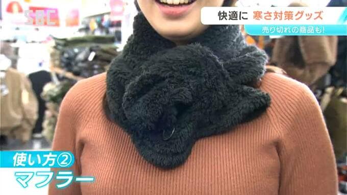 ワークマンプラス長野高田店 町田知代店長:「こちらがようやく入ってきた女性に人気のネックウォーマーになります」