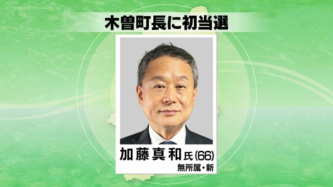 木曽町長選挙 新人の加藤真和氏が無投票で初当選 2025年11月11日(火) 18:59 国内 11日告示された木曽町の町長選挙は、無所属で新人の加藤真和さんが無投票で初当選を決めました。加藤さんは66歳。木曽町の漆器製造販売会社の元社長で、高齢者や子育て世代が安心して暮らせるまちづくりや、観光と…