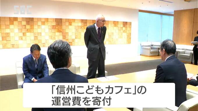 会社は、子どもの学習支援や食事の提供などを行う「信州こどもカフェ」の運営費として寄付を続けていて、11日は600万円を贈りました。