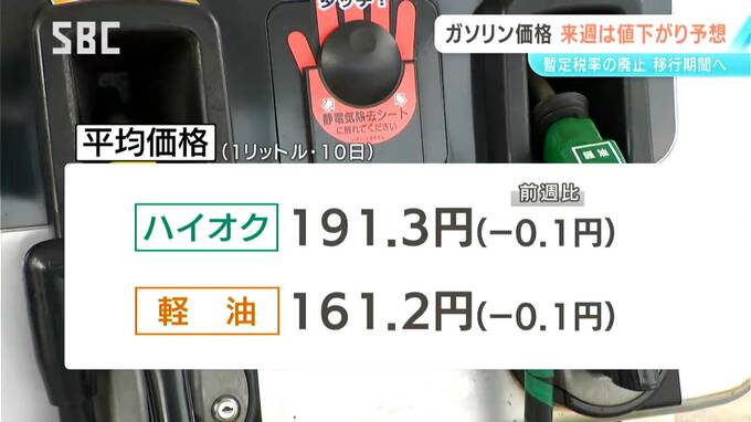 ハイオクは191.3円、軽油は161.2円でいずれも0.1円の値下がりです。