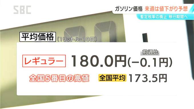 石油情報センターによりますと、長野県内の10日時点のガソリン価格は、レギュラーの平均が180.0円で、前の週より0.1円下がりました。