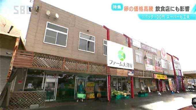 記者リポート:「タマゴの価格が高騰する中、この店では毎週月曜日は1パック100円(2Lサイズ)となっています」