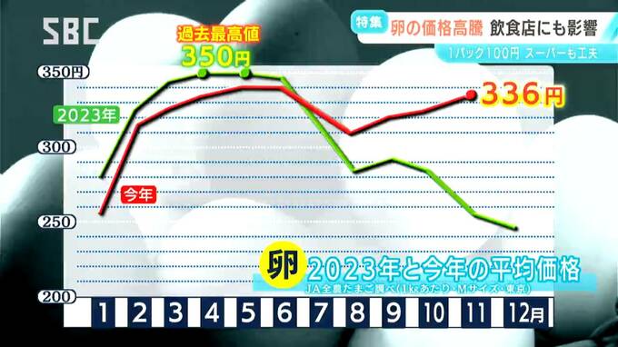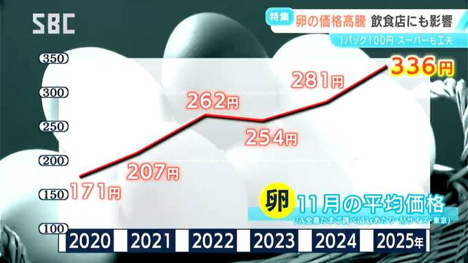 JA全農たまごによりますと今月の平均価格は1キロ当たり336円。過去5年の同じ月と比べて最も高くなっています。