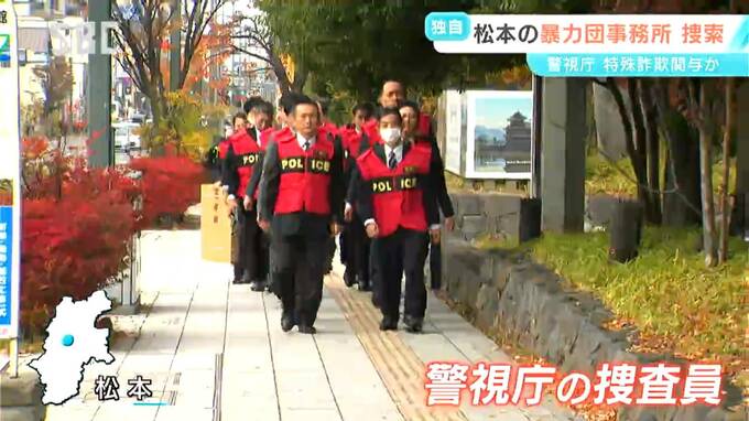 そろいのベストを身に付けて歩いてくるのは、警視庁の捜査員17人。向かった先は松本市内にある暴力団の事務所です。