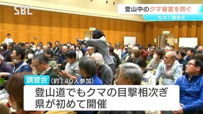 講習会は登山道でのクマの目撃が相次いでいることから県が初めて企画し、140人が参加しました。