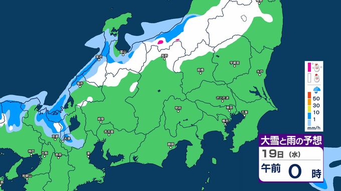 長野県内に強い寒気 18日午後から19日にかけ 平地でも積雪か【雪と雨のシミュレー…