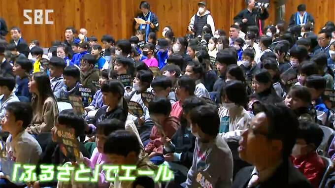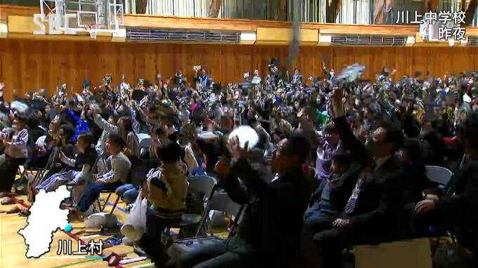 油井さんの母校・川上中学校には佐久地域の小中学生などおよそ800人が詰めかけました。