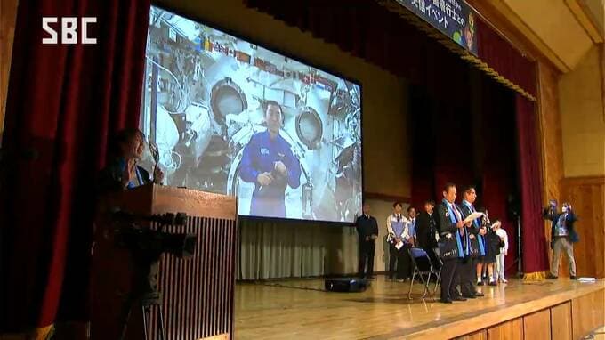 子どもたちは国際宇宙ステーションに長期滞在中で、二酸化炭素の除去技術の実証実験などに取り組む油井さんとおよそ20分間にわたって交信しました。
