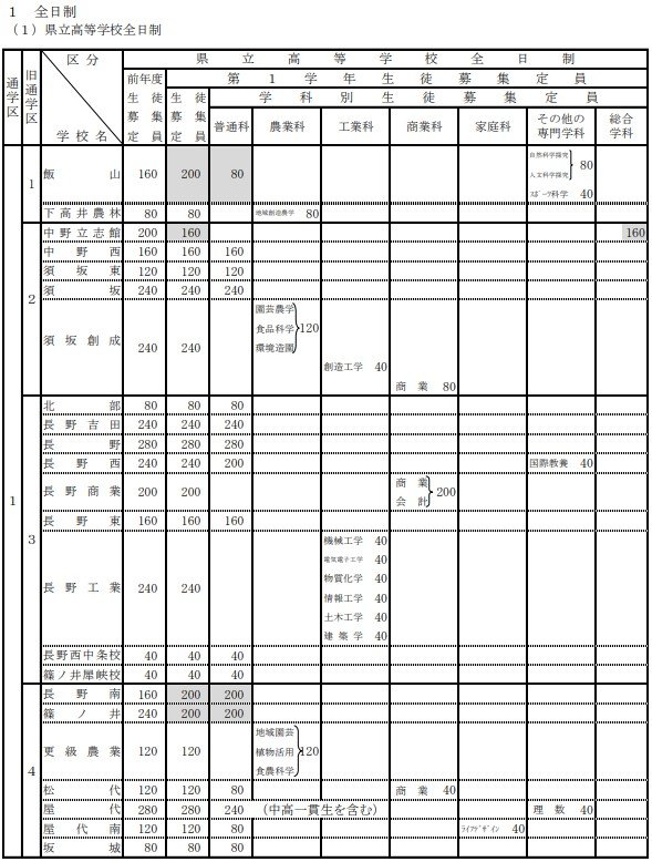 【全校一覧掲載】2026年春の公立高校の募集定員 全日制1万2960人 多部制440人 定時制680人 長野県