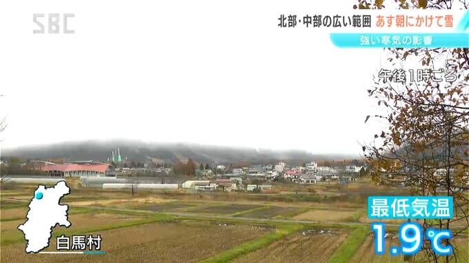 長野地方気象台によりますと、県内の上空に強い寒気が入ってきていることから、19日明け方にかけて、北部・中部で雪になりそうです。