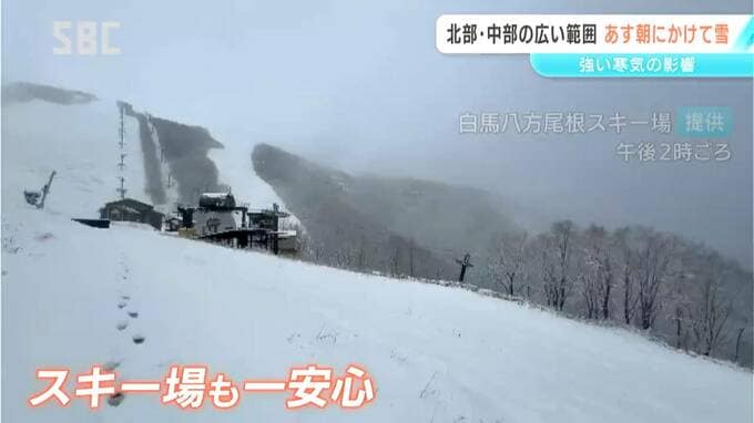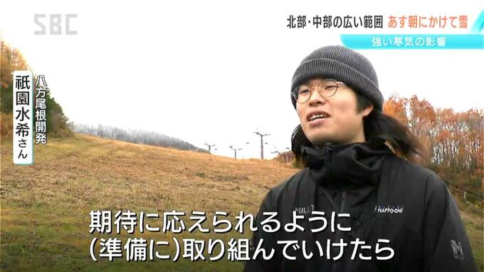 八方尾根開発 祇園水希さん:「やっと雪が、山の上にうっすら冠雪はしてはいたんですけど、こうやってふもとに降ってくると。(シーズンが)始まってきたなと高揚感に包まれている。期待にこたえられるように準備に取り組んでいけたら」
