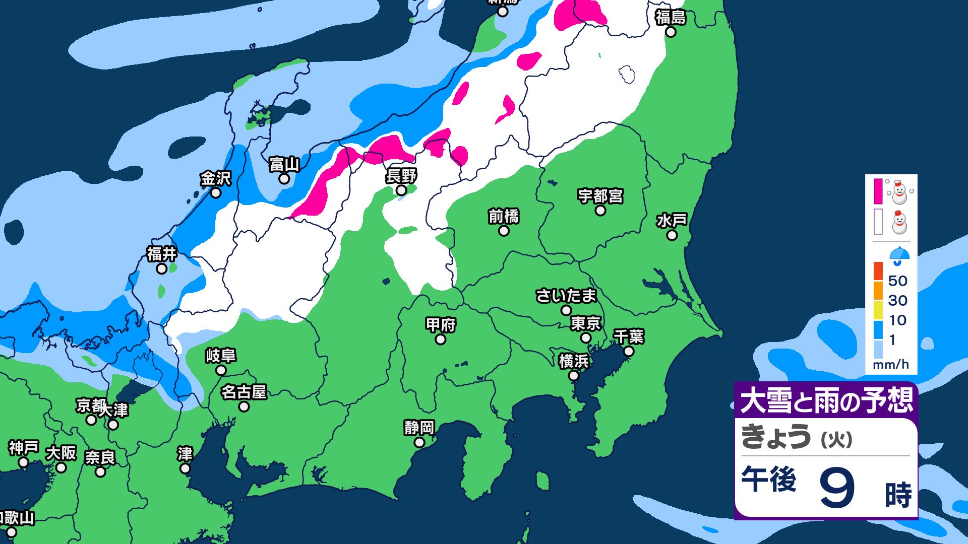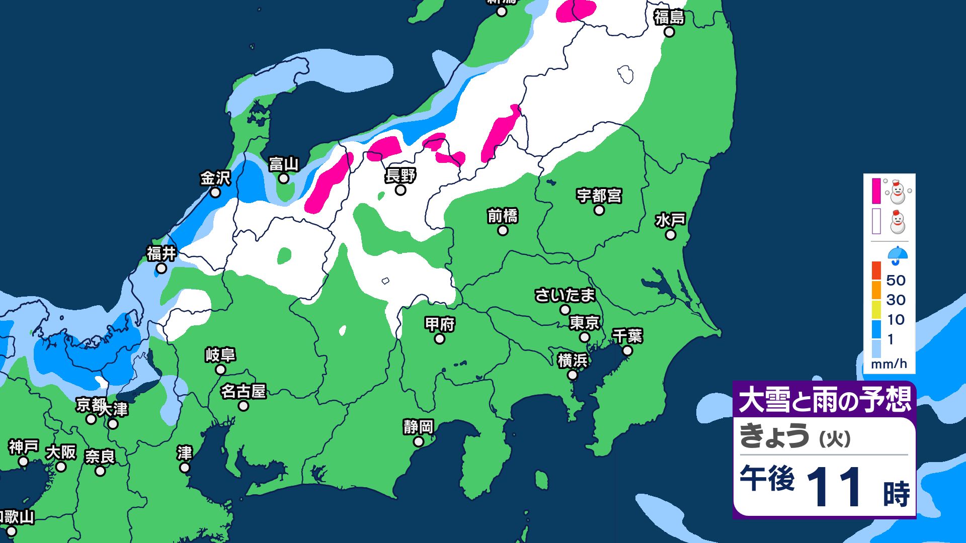 強い寒気の影響 19日明け方にかけて 北部や中部などで積雪か【雪と雨のシミュレーション画像】栄村では本降りの雪 白馬村のゲレンデでは待望の雪