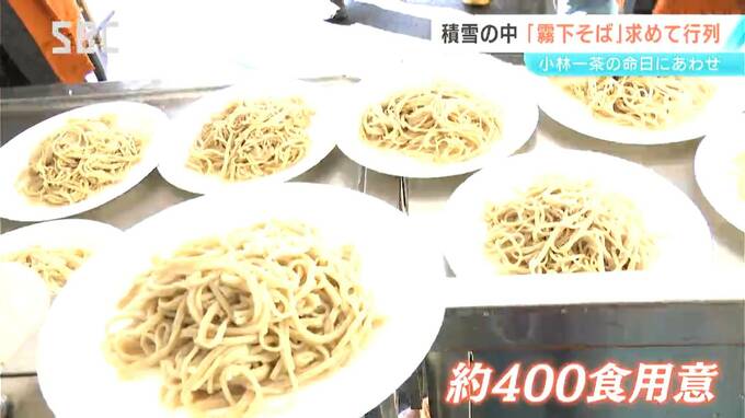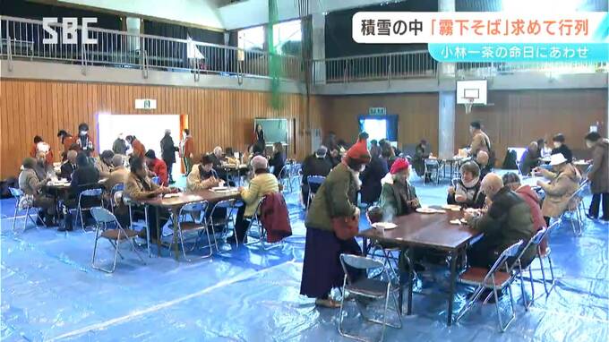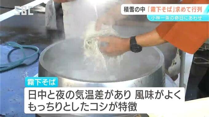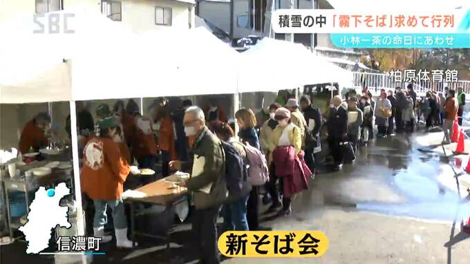 今シーズン初の積雪となった信濃町では、小林一茶の命日にあわせた新そばを提供するイベントに大勢の人が訪れました。